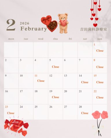 2026年2月の診療日と休診日のカレンダーです。
